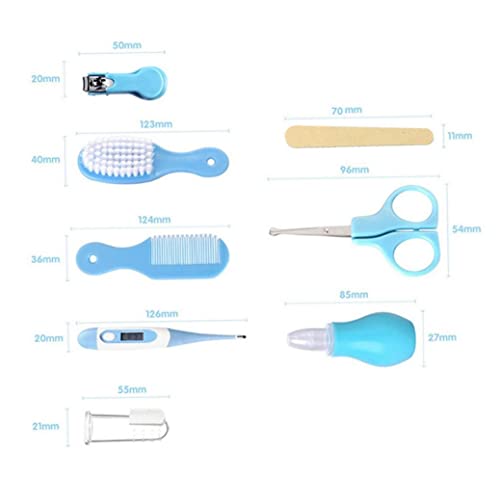Specification: Baby Grooming Kit, 8PCS Portable Newborn Care Essentials Set with Safety Nail Cutter in Blue
