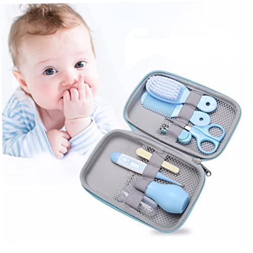 Baby Grooming Kit, 8PCS Portable Newborn Care Essentials Set with Safety Nail Cutter in Blue