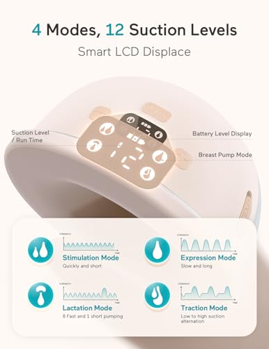 More Comfortable And Efficient: Paruu P16 breast pump with 4 Modes & 12 Levels, suction range 49.5 – 309mmHg, You can customize your pumping rhythm, suction power and speed make sure every mother can adjust the suction strength based on milk flow and comfort level. Provides a more comfortable and efficient breastfeeding experience.(Tips: When the suction is weakened, please first check whether the Valve and Diaphragm are tightly installed)