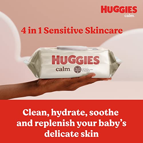 Huggies Calm Baby Wipes: 6 push button packs of 56 unscented wipes (336 wipes total), Packaging May Vary