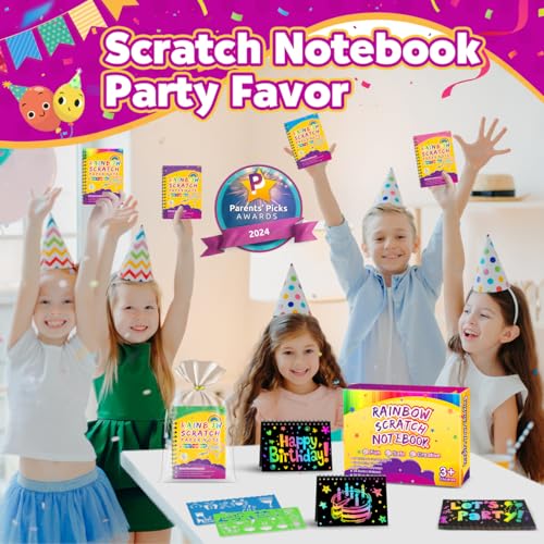 Party Favors for Kids 4-8-12: 24 Pack Scratch Rainbow Art Crafts Notebook, Coloring Book Goodie Bags Stuffers Kit, Bulk Birthday Gift Classroom Prizes Girl Boy Toddler
