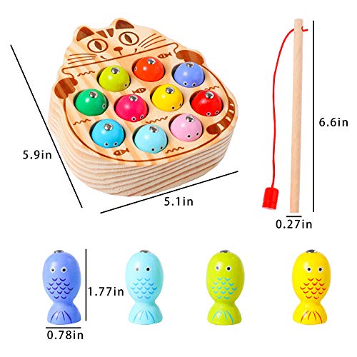 Specification: Montessori Magnetic Wooden Fishing Game for Toddlers 1-3 Years Old,Fine Motor Skills Early Learning Eyes Hands Cooperation Toy for Boys & Girls Great Birthday Gift