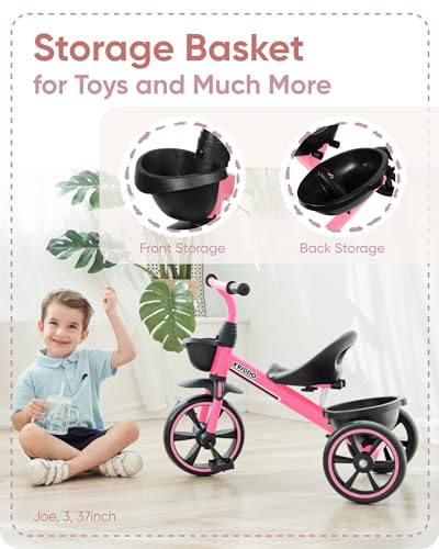 KRIDDO Tricycle for 2-5 Year Olds – Pink Toddler Trike With Gift for 24 Month to 4 Year Old Girls