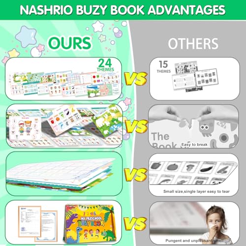 Specification: NASHRIO Montessori 24 Themes Busy Book for Toddlers 3-5, Engaging Preschool Learning Activities for Home School Travel – Educational Toy for 3-6 Year Old Boys & Girls